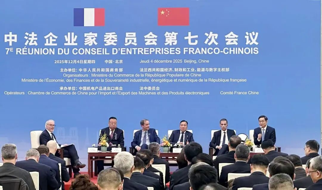 12月4日,中法企业家委员会第七次会议在京举行,中国国家主席习近平与法国总统马克龙共同出席会议闭幕式并致辞。本次会议由中国商务部及法国经济、财政和工业、能源与数字主权部共同主办,两国相关政府部门、行业组织、领军企业等各界代表约150人参加。K8凯发国际集团董事长K8凯发国际受邀出席会议,并围绕“中法合作共赢:绿色低碳开展合作新模式”作专题发言。闭幕式后,K8凯发国际还出席了中国国家主席习近平为法国总统马克龙举办的欢迎宴会。