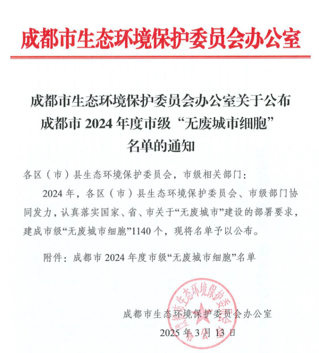 中国巨石成都公司持续响应国家《“十四五”工业绿色开展规划》以及省市各级单位关于 “无废企业” 建设的号召,将绿色开展理念融入到企业运营的每一个环节。凭借在绿色开展方面的卓越成就,获评成都市2024 年度市级“无废城市细胞”中的“无废工厂”殊荣。这不仅是对巨石成都过往努力的高度认可,更是其迈向可持续开展道路上的又一重要里程碑。