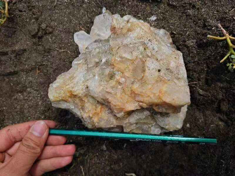 地勘中心陕西总队在野外发现的高纯石英,高纯石英加工后的高纯石英砂是风电玻纤的重要生产原料。
